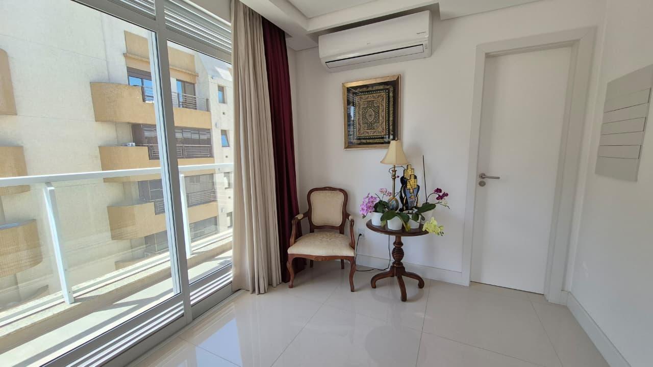 A cobertura é semimobiliada, com armários nos dormitórios, sala e banheiros, proporcionando praticidade e excelente aproveitamento dos espaços. Possui 2 vagas de garagem e 2 hobbox.