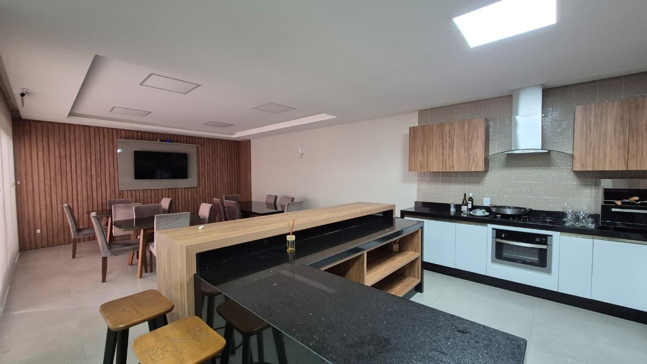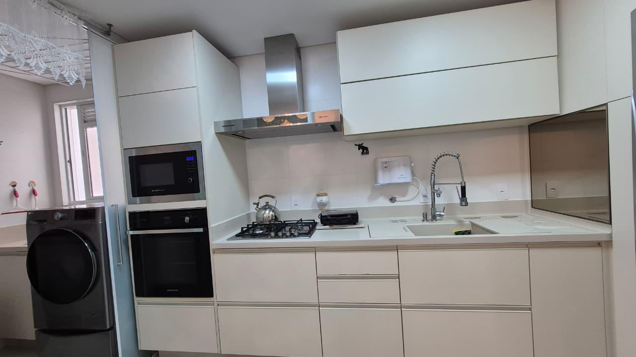 Conta com living para 3 ambientes, terraço com churrasqueira e piscina, cozinha ampla com armários planejados e área de serviço.